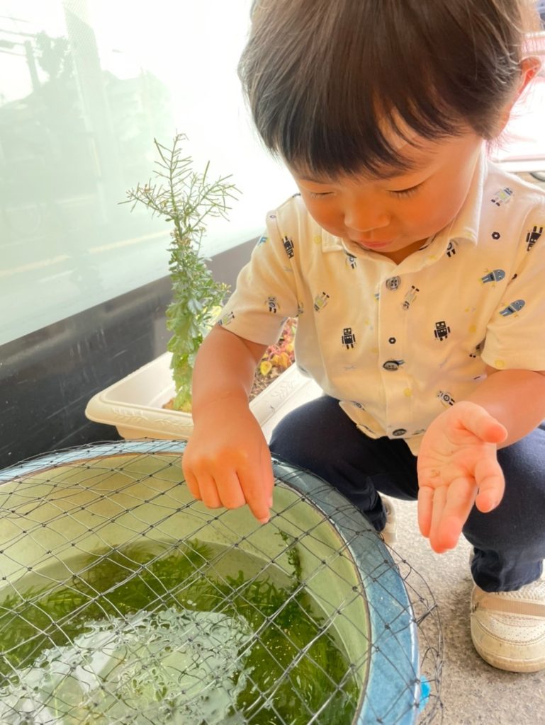 鉢の中でスイスイ泳ぐお魚たちに子どもたちも大喜びです😆!
