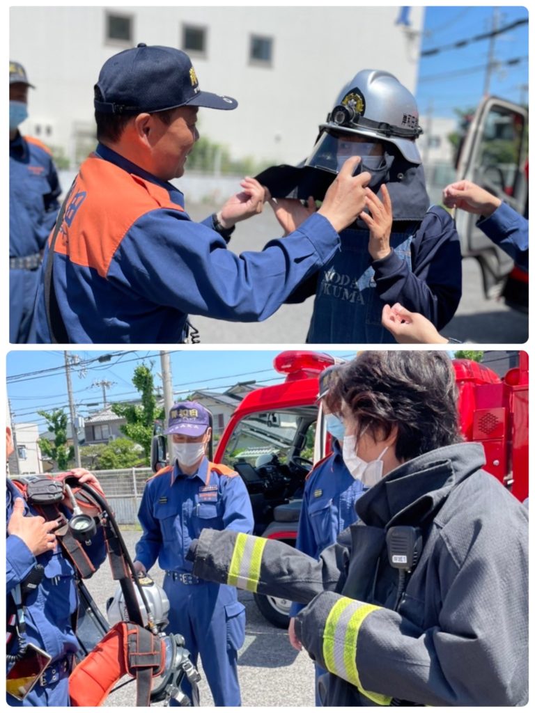 全てを着用すると重たくて消火活動の大変さを知りました!