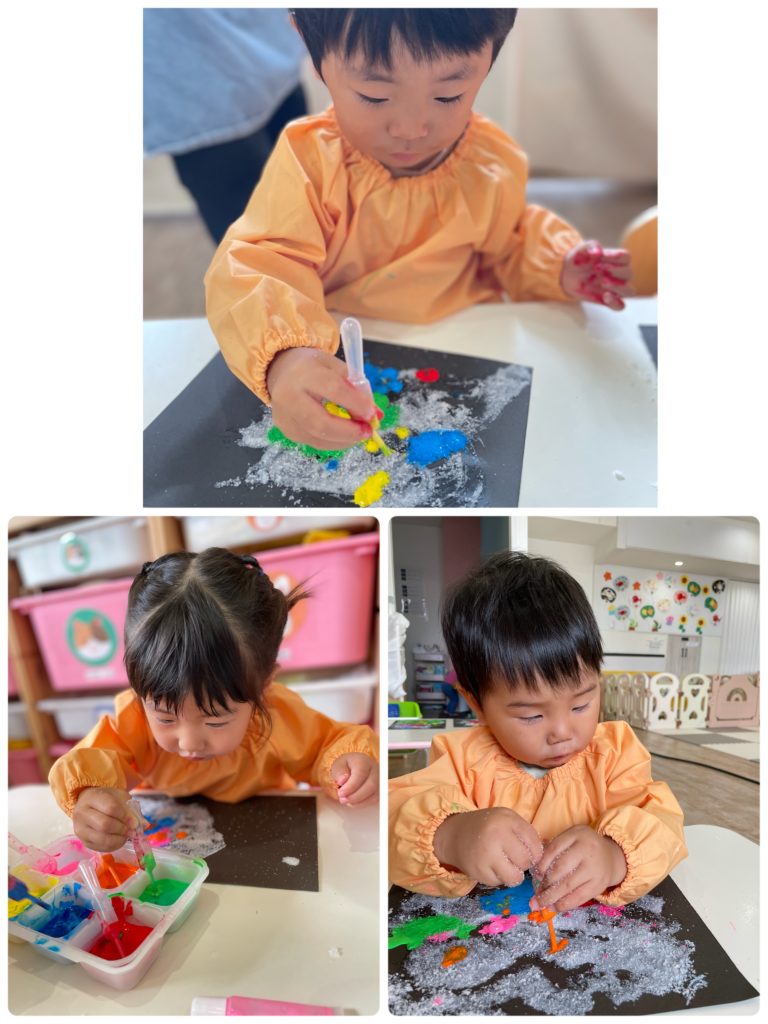 2歳児さんはスポイドを上手に使っていましたよ!!