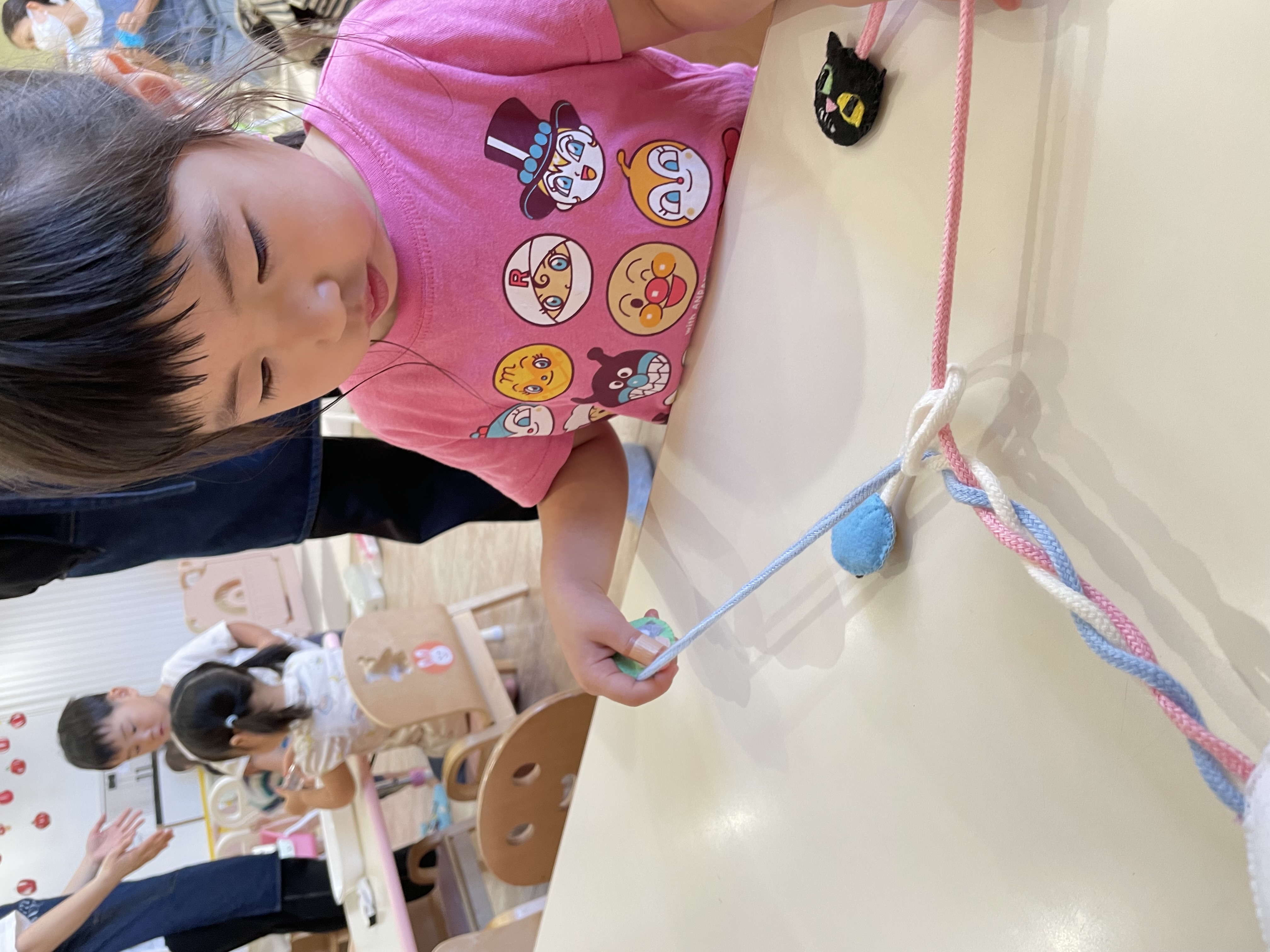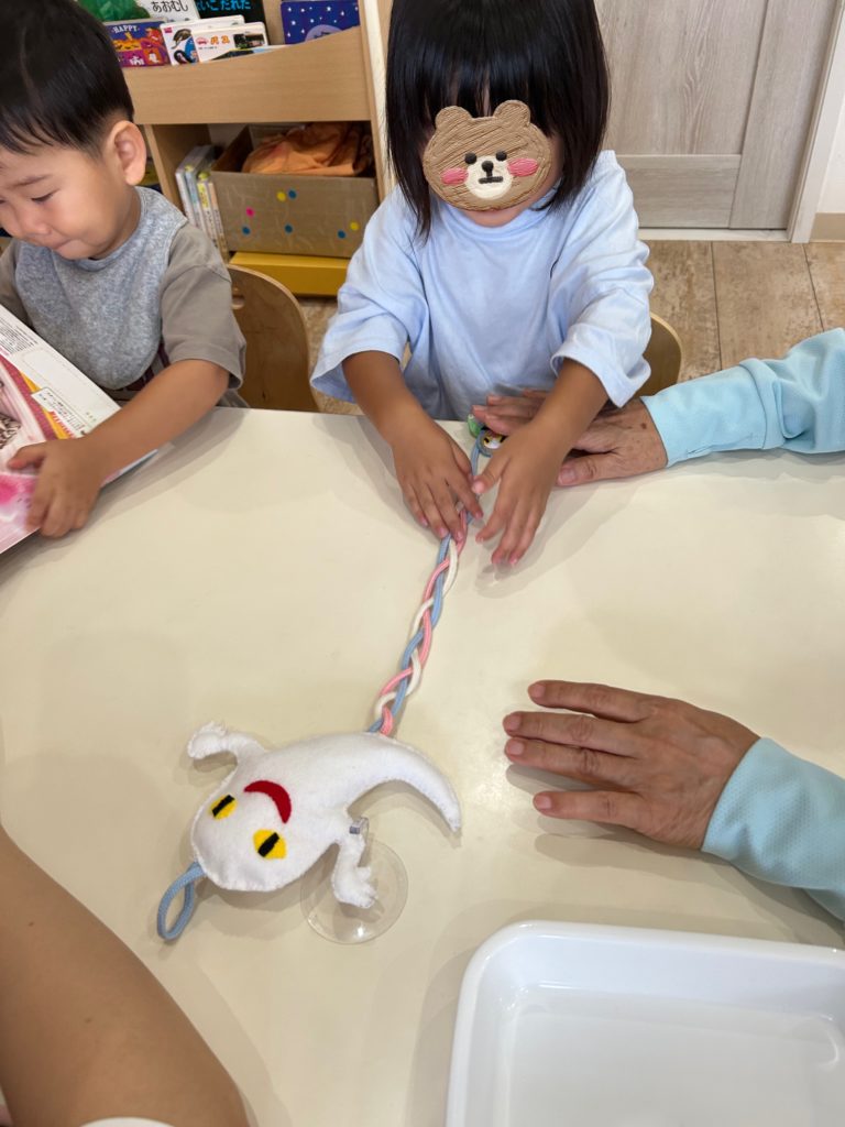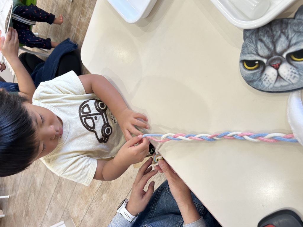 子ども達の様子を見てお仕事に『三つ編み』の教具を出してみました!