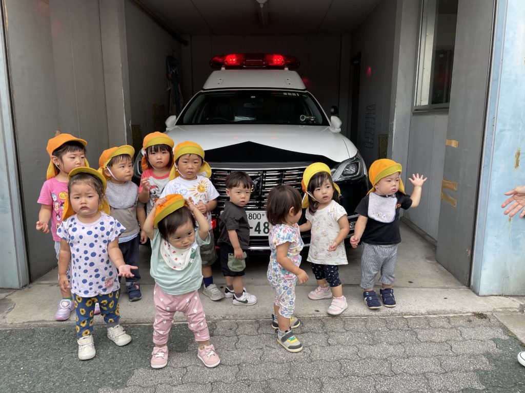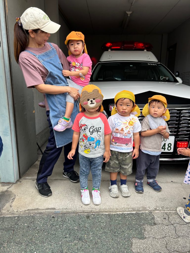交番の前で警察官の方々に出迎えていただき緊張気味の子ども達でしたが『こんにちは!』と元気に挨拶をしていましたよ♪