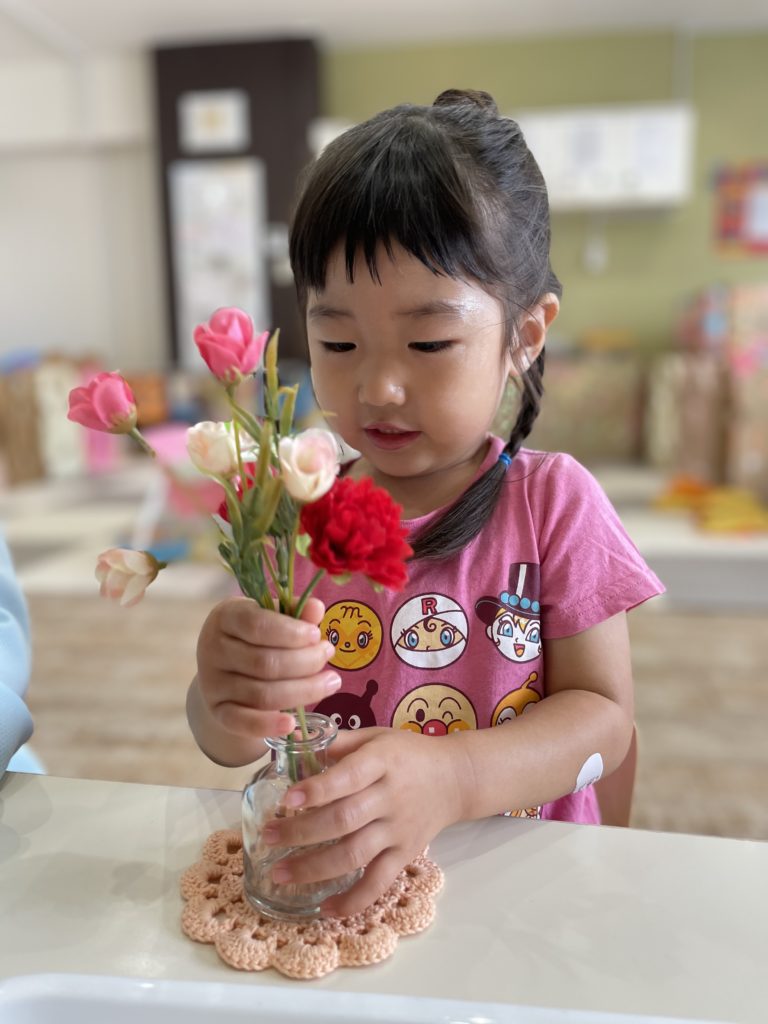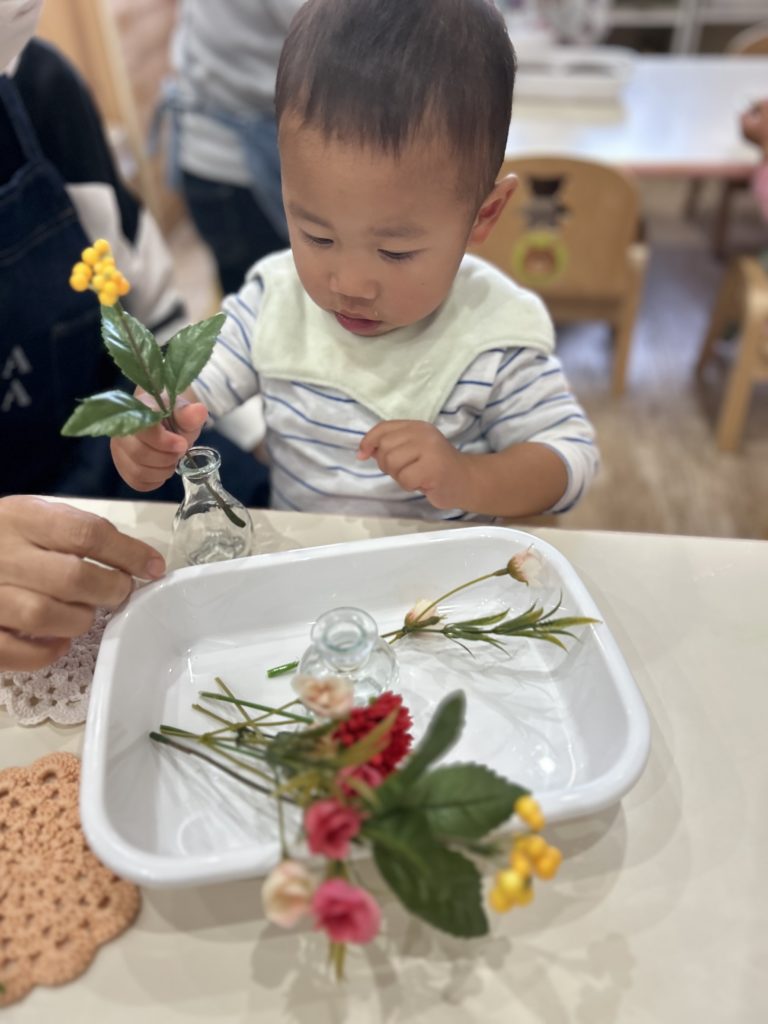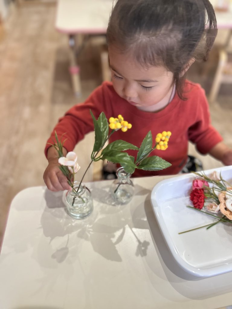 モンテッソーリ教育の日常生活の練習の分野に「花を生ける」お仕事があります🌼