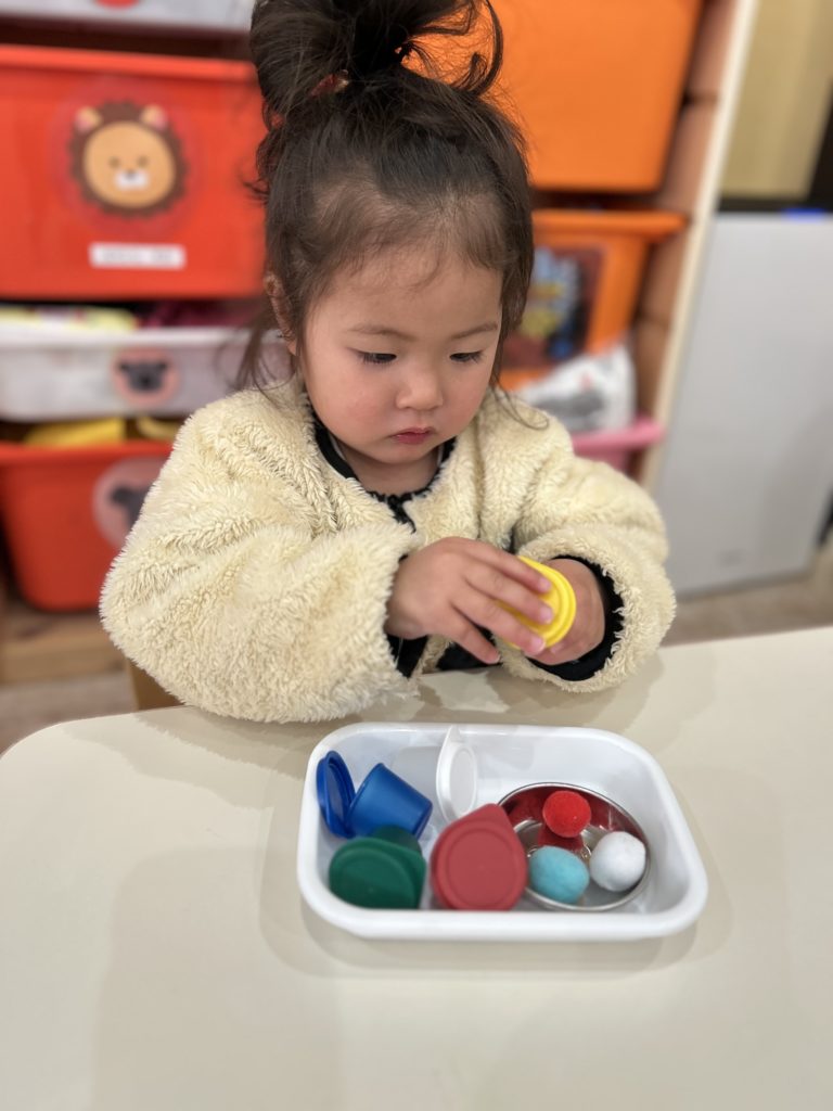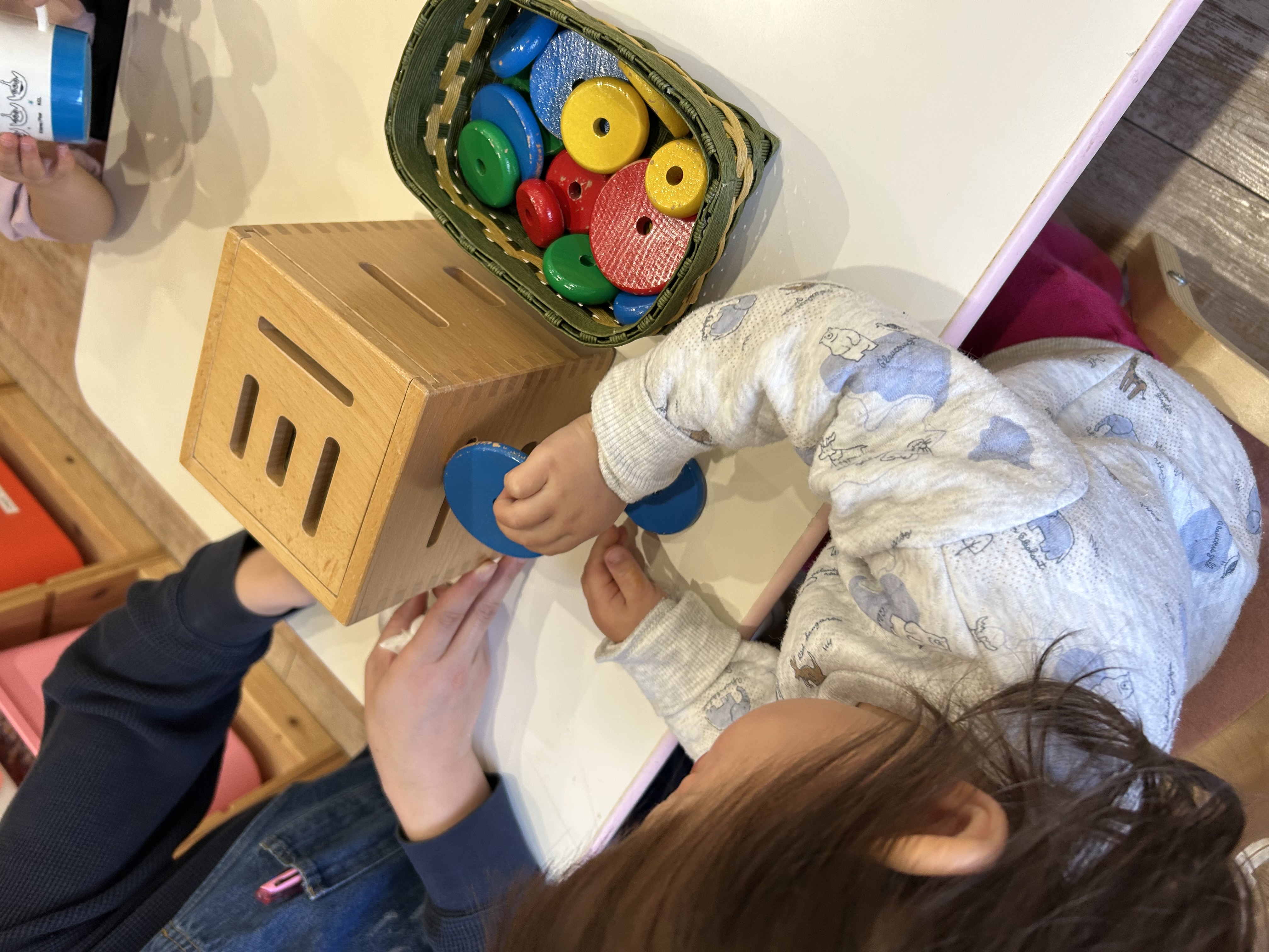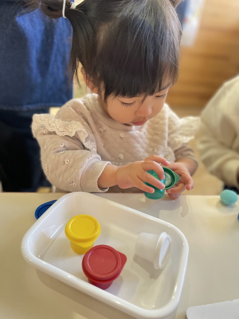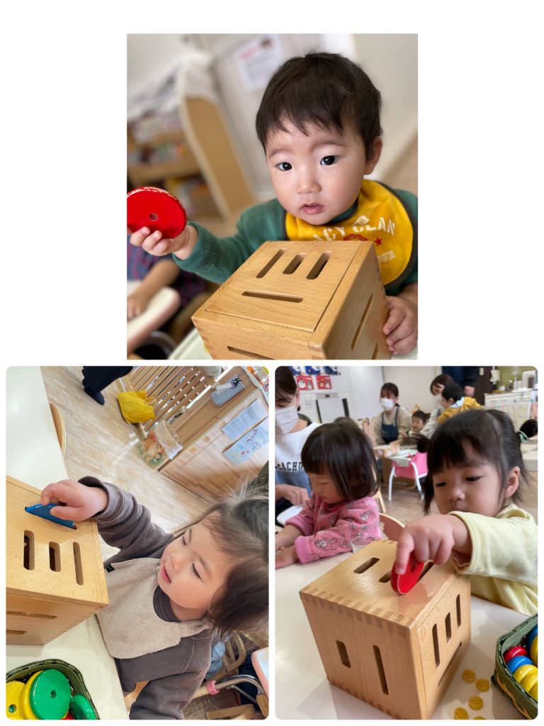 1歳以降の敏感期には、掴む、落とす、通す、積む、さすなど、成長段階に合わせていろいろ遊ぶことができました。