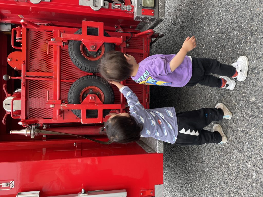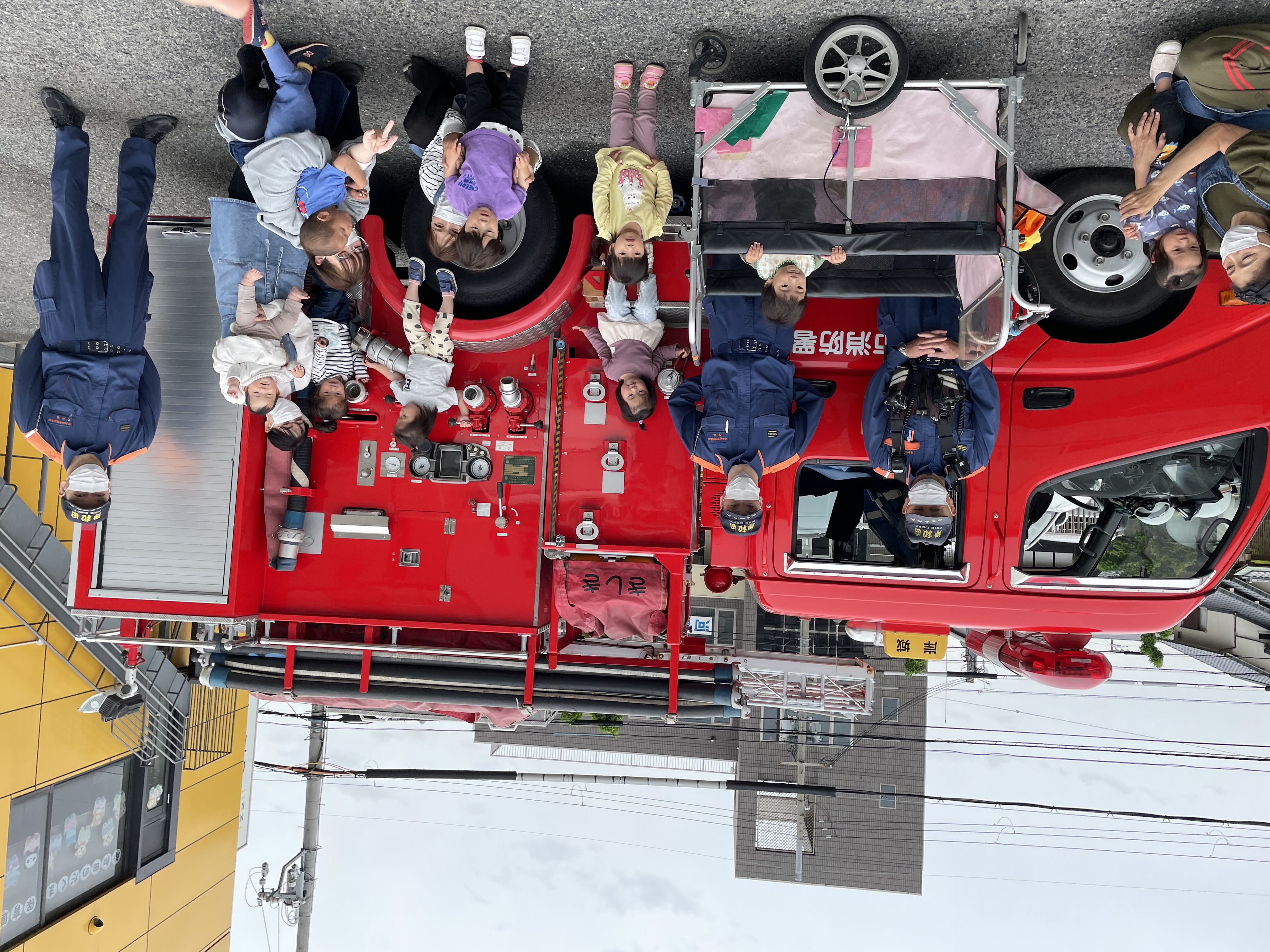 職員たちは消火訓練を学び、実際に消火器具を使って体験もさせていただきました。