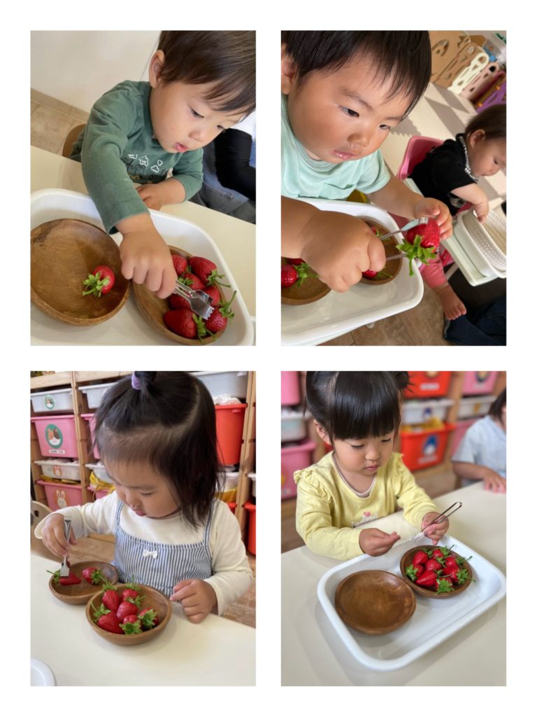 『いちご🍓のあけうつし』トングを使って一つ一つ丁寧に取り組んでいましたよ。
