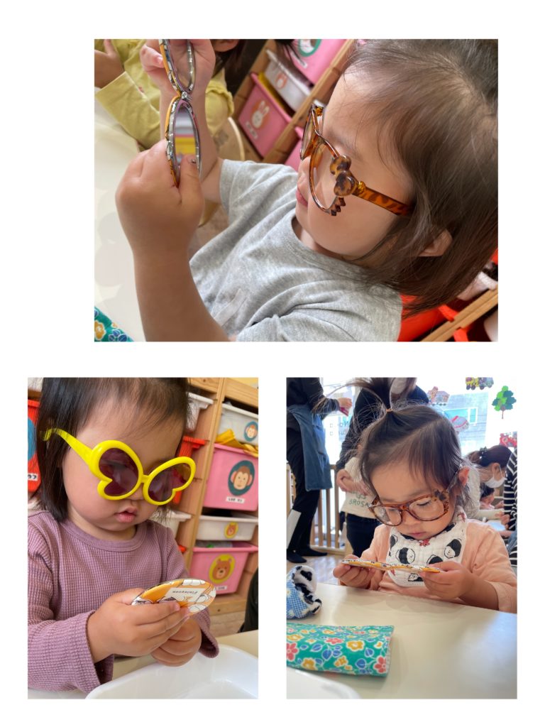『メガネ👓』鏡で自分の顔を見て興味津々です❣️