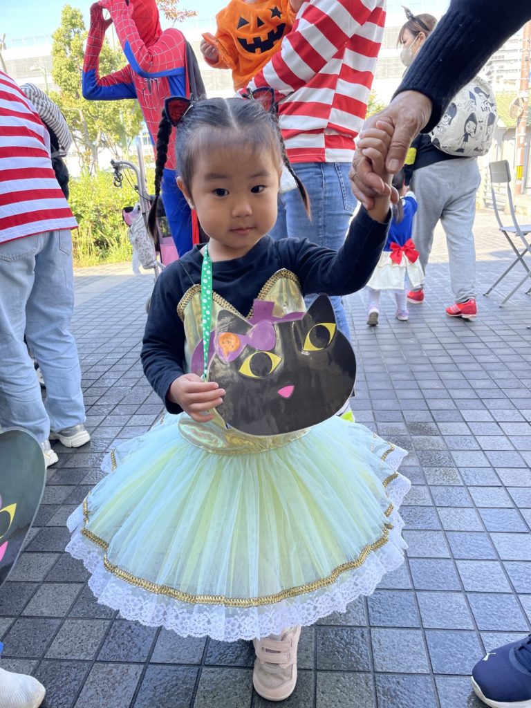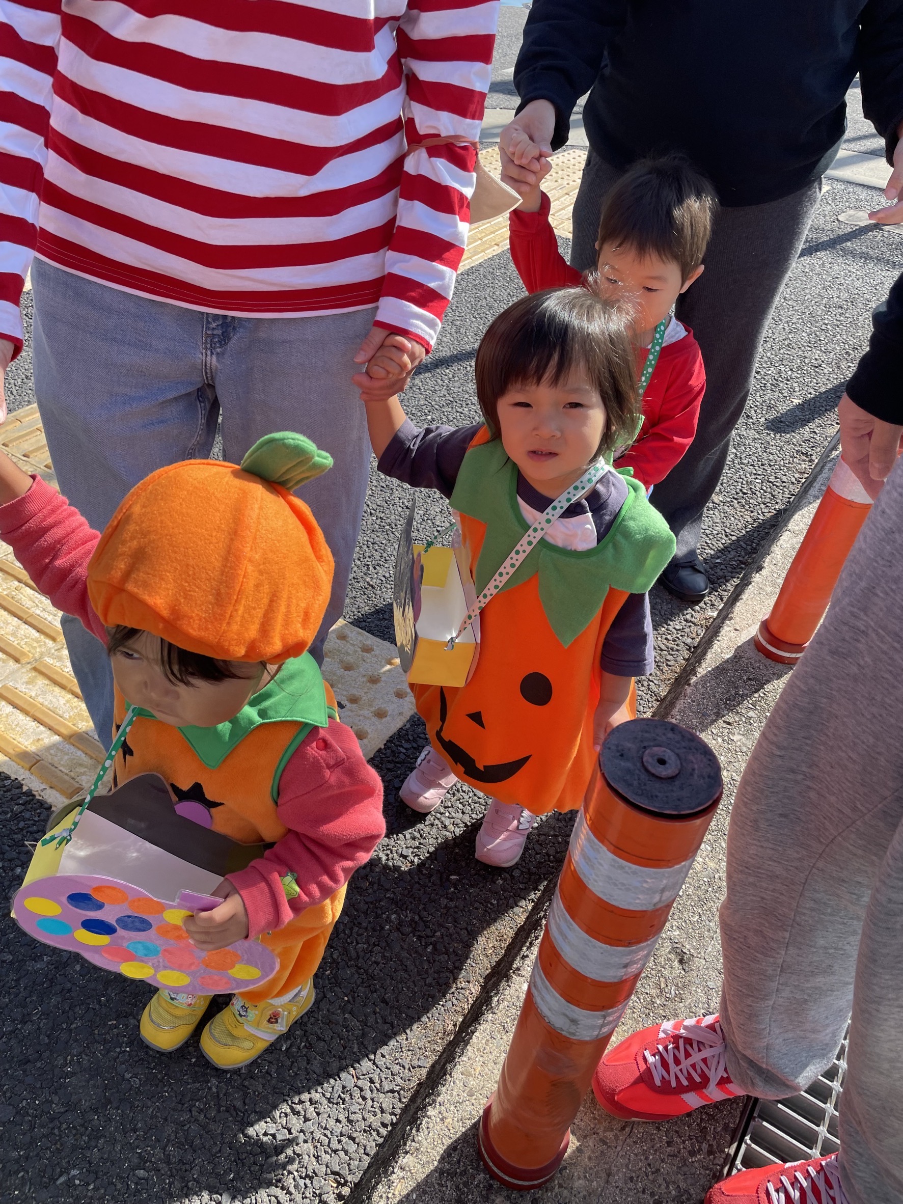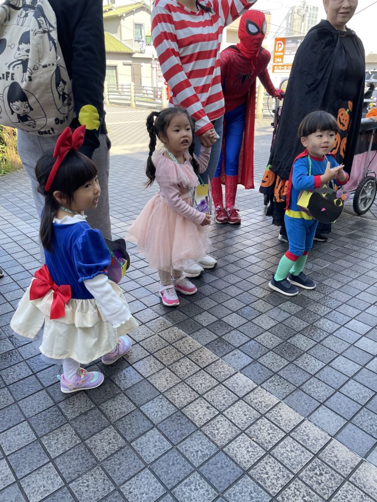 お散歩し、ご近所のお店の方などに協力をお願いしお菓子をもらいに行きました❣️